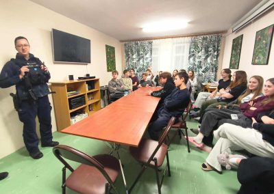 6 listopada 2025 roku odbyło się kolejne spotkanie z funkcjonariuszami KMP w Skierniewicach. Tym razem dotyczyło ono odpowiedzialności karnej nieletnich, w tym także za czyny popełnione w sieci.