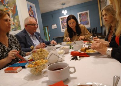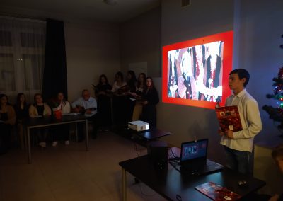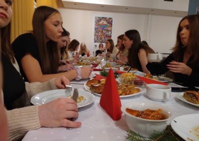 W ten magiczny wieczór przypomnieliśmy sobie bożonarodzeniowe zwyczaje i tradycje, przy dźwiękach muzyki odśpiewaliśmy kolędy oraz pastorałki, a następnie zasiedliśmy przy wigilijnym stole, dzieliliśmy się opłatkiem i składaliśmy sobie świąteczne życzenia.