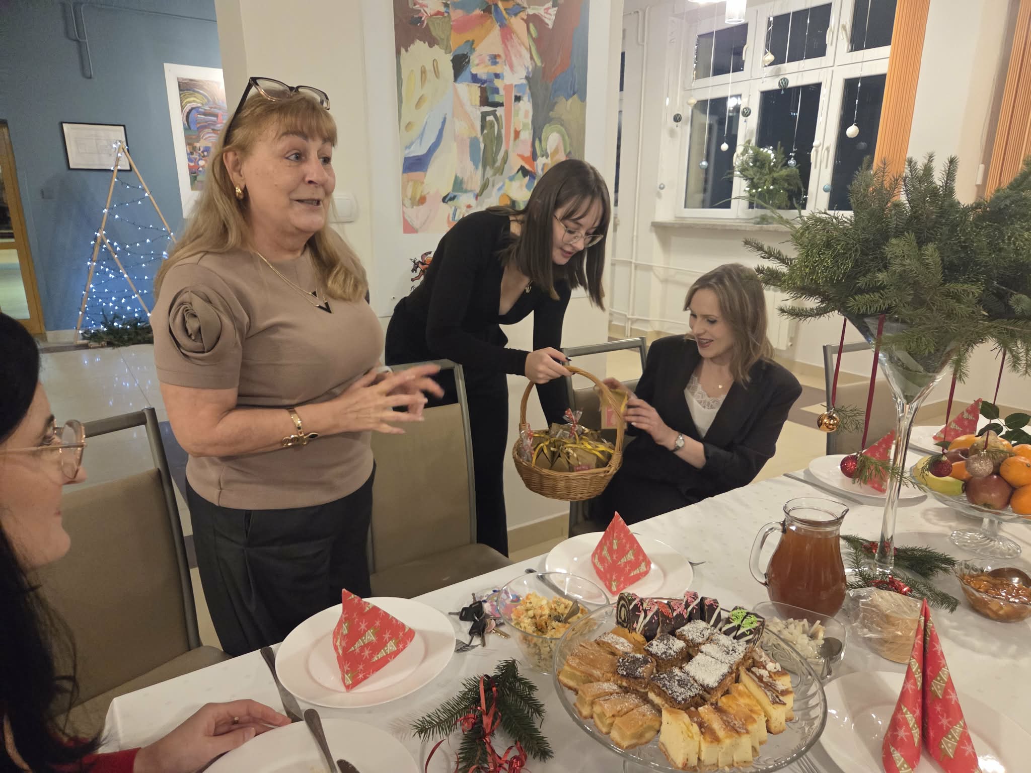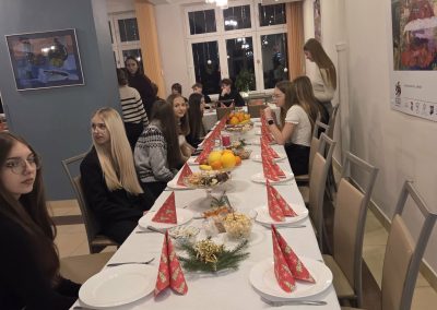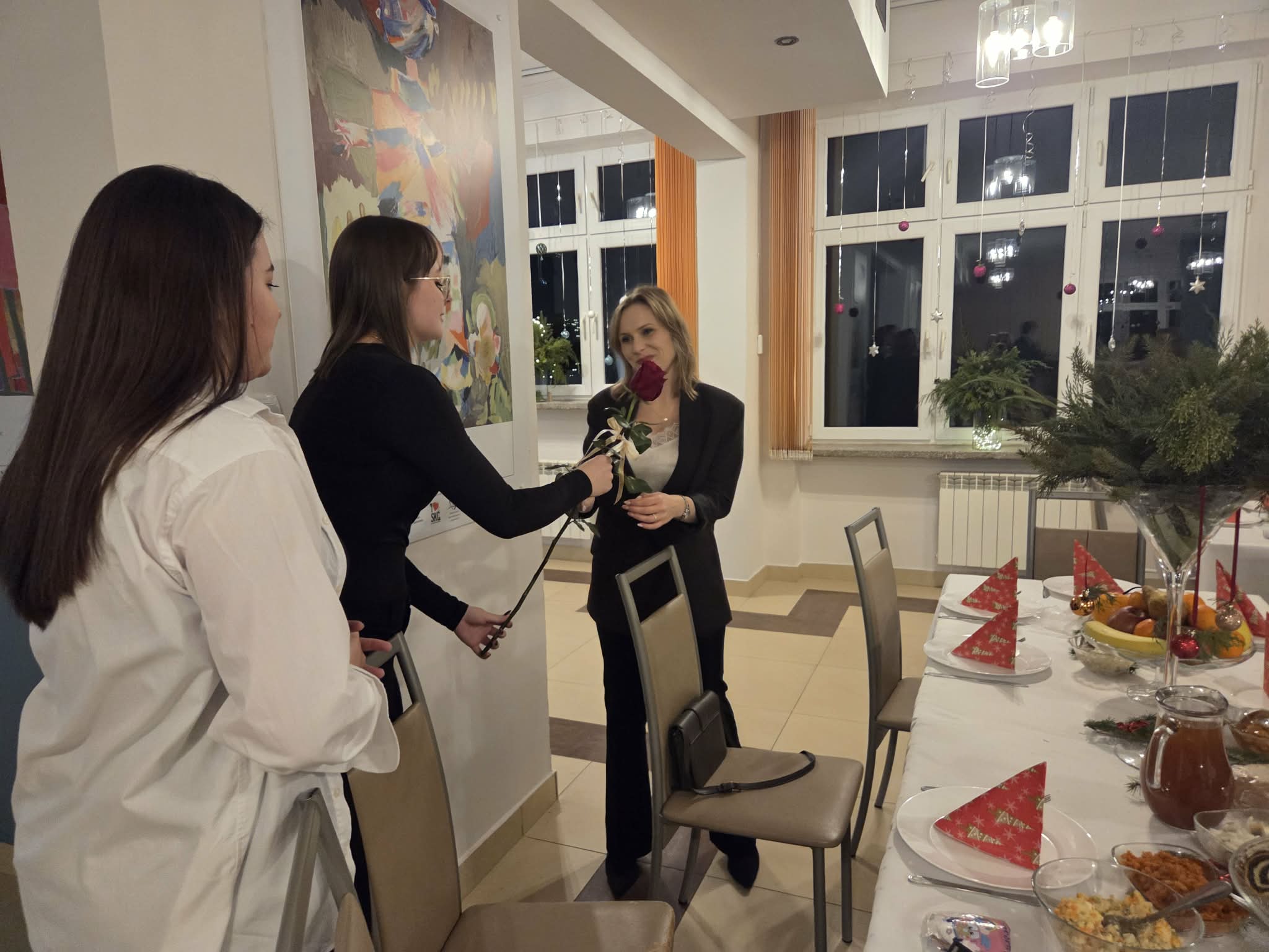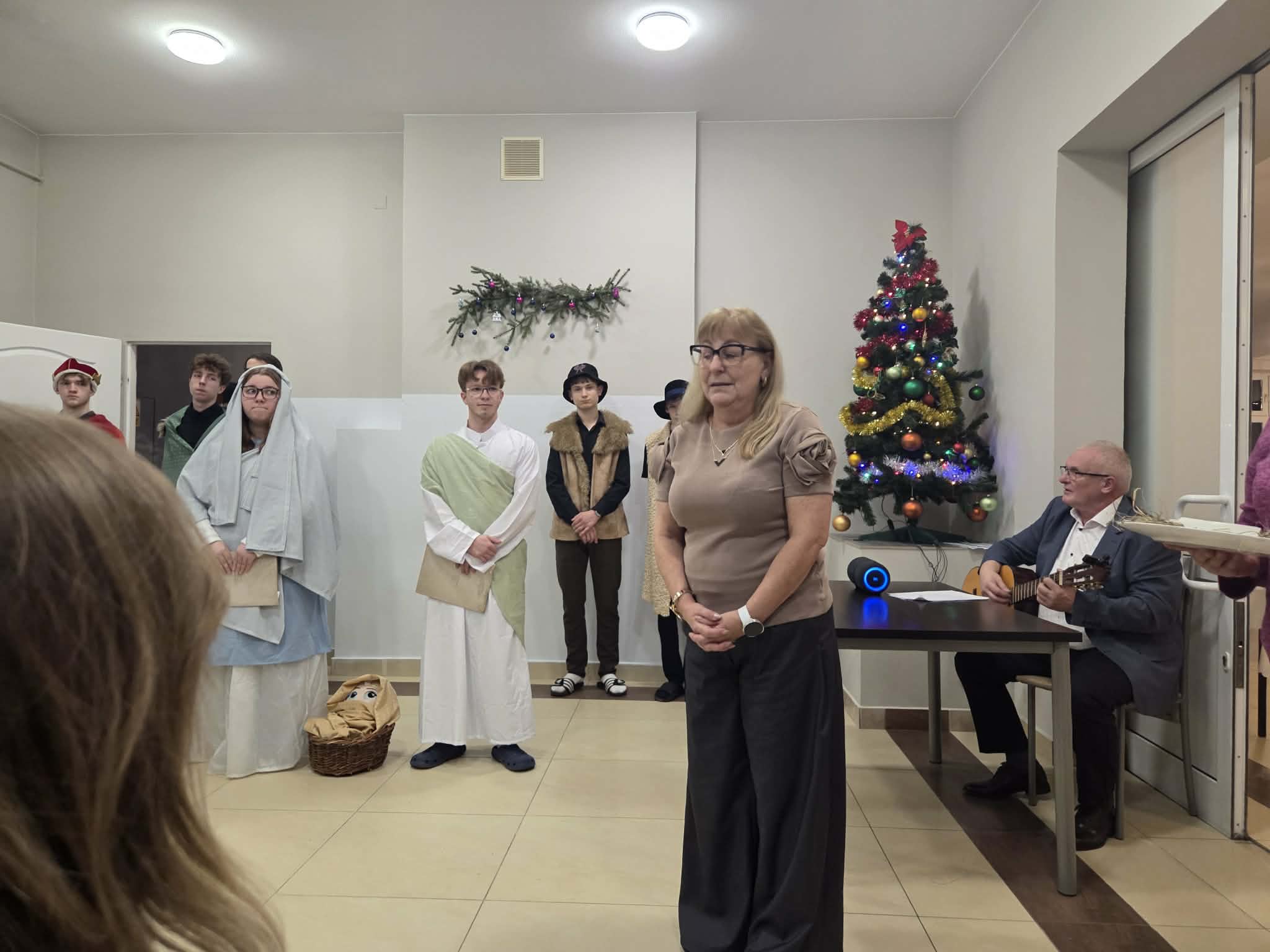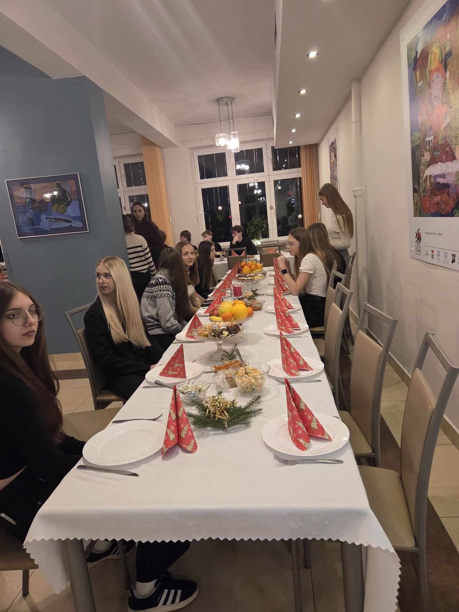 W ten magiczny, grudniowy wieczór przypomnieliśmy sobie bożonarodzeniowe zwyczaje i tradycje, przy dźwiękach muzyki odśpiewaliśmy kolędy, a następnie zasiedliśmy przy wigilijnym stole, dzieliliśmy się opłatkiem i składaliśmy sobie świąteczne życzenia