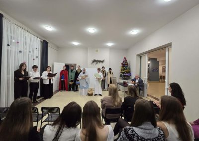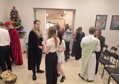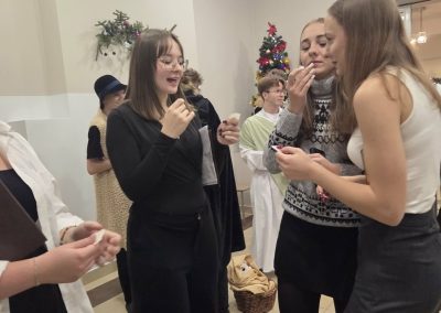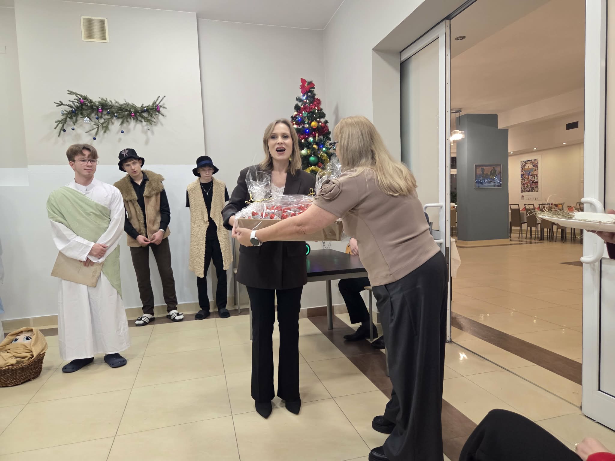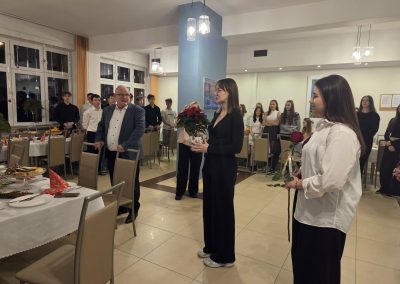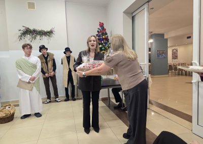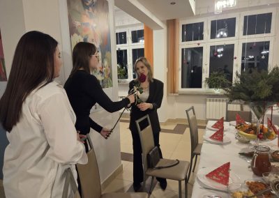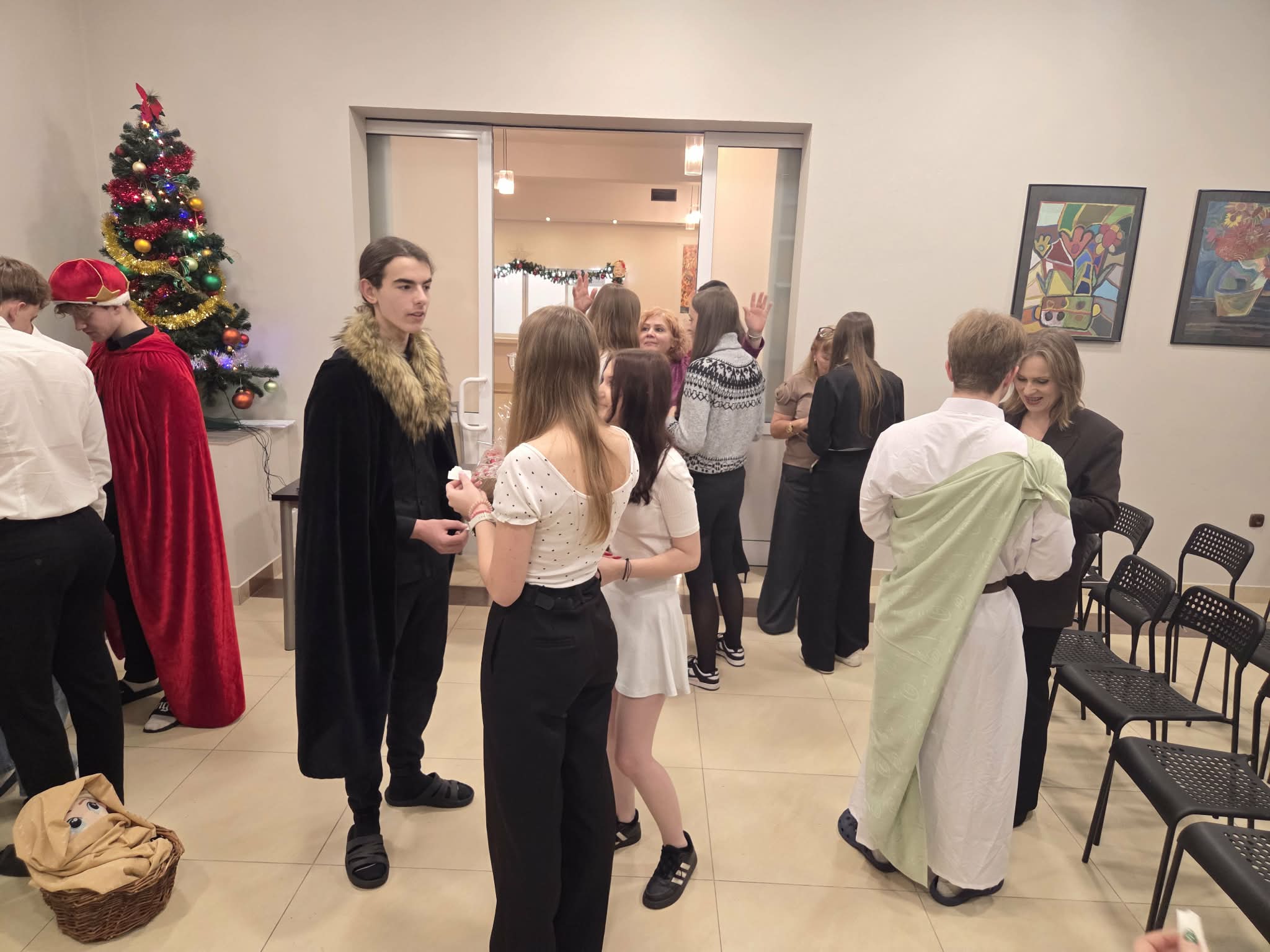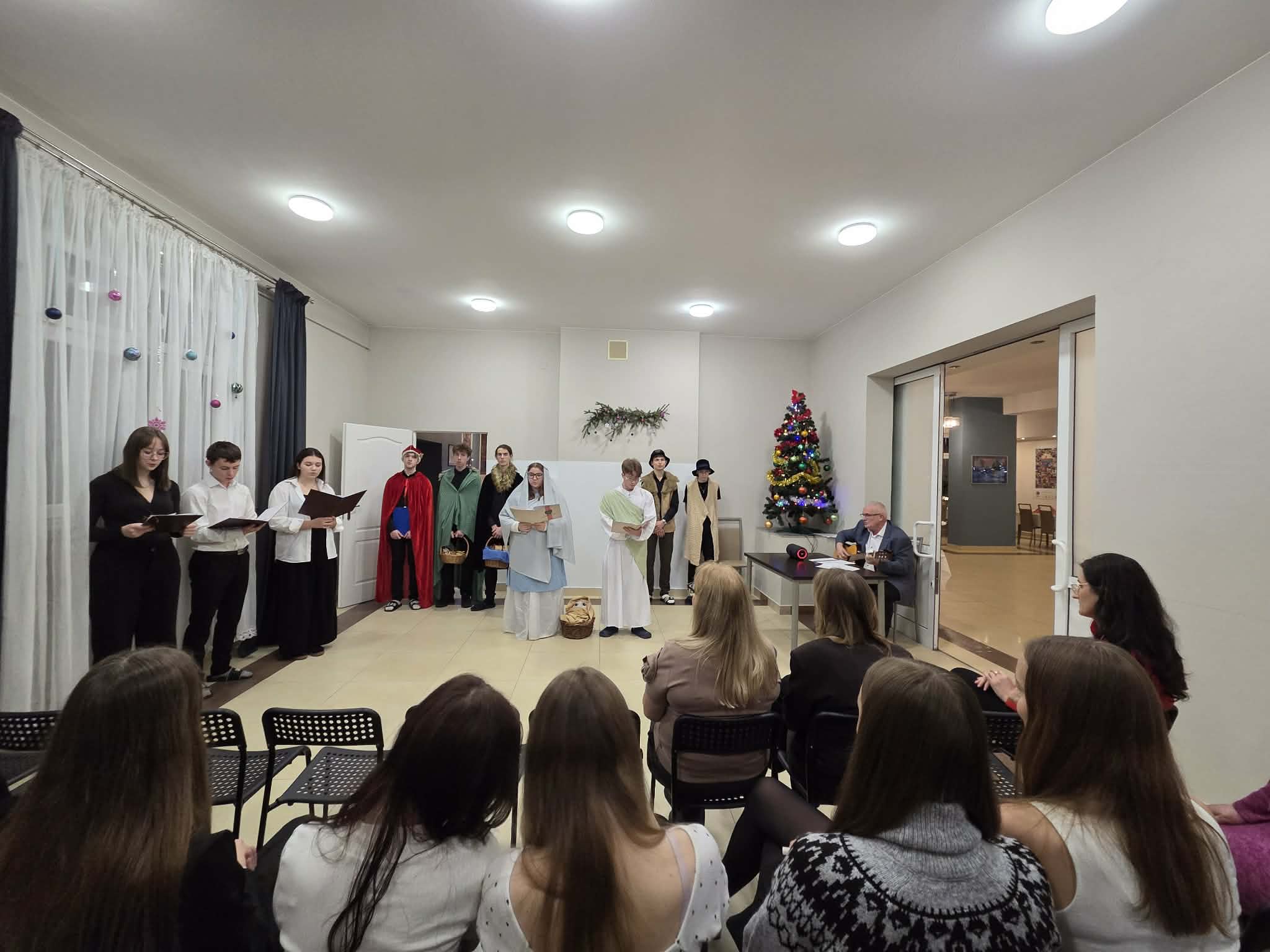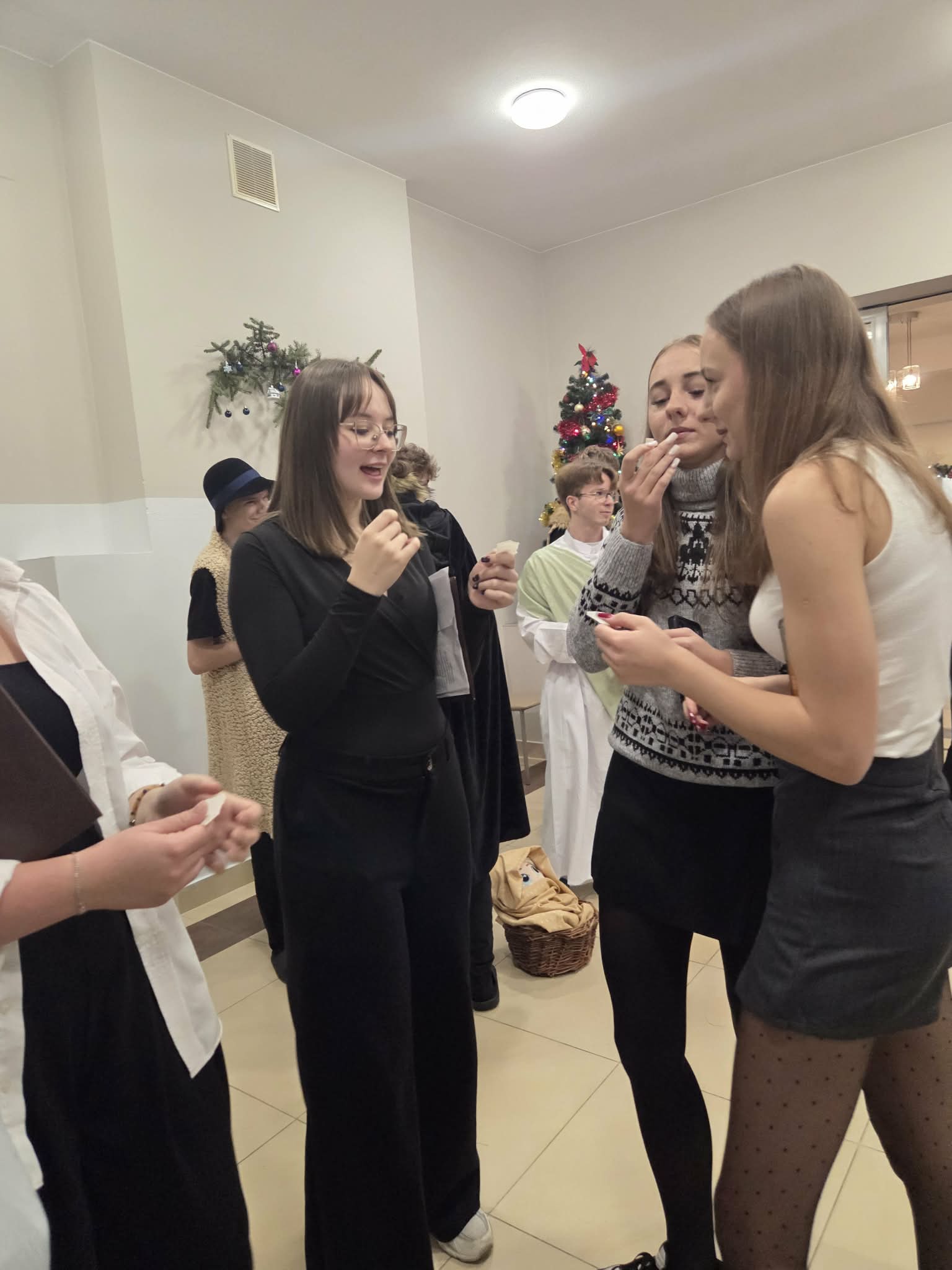 W ten magiczny, grudniowy wieczór przypomnieliśmy sobie bożonarodzeniowe zwyczaje i tradycje, przy dźwiękach muzyki odśpiewaliśmy kolędy, a następnie zasiedliśmy przy wigilijnym stole, dzieliliśmy się opłatkiem i składaliśmy sobie świąteczne życzenia